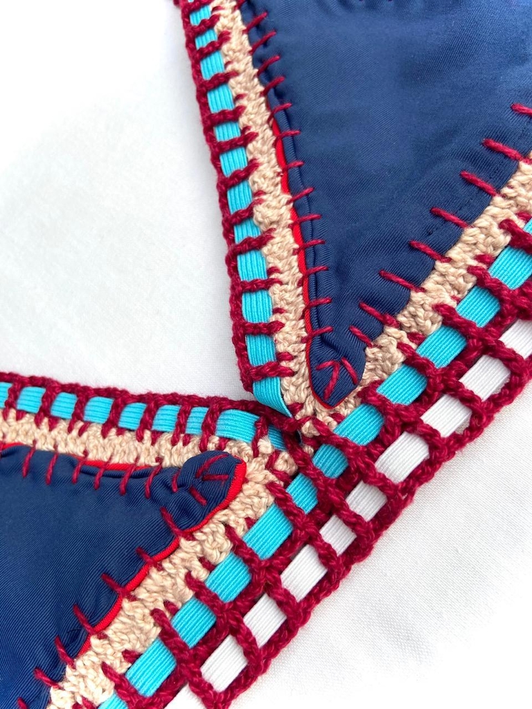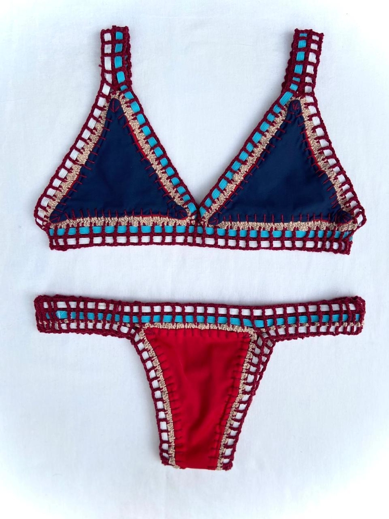 Biquíni Dupla Face feito com lycra de qualidade (Rosset), forro anti-transparência, detalhe e acabamento em elástico e crochê antialérgico.