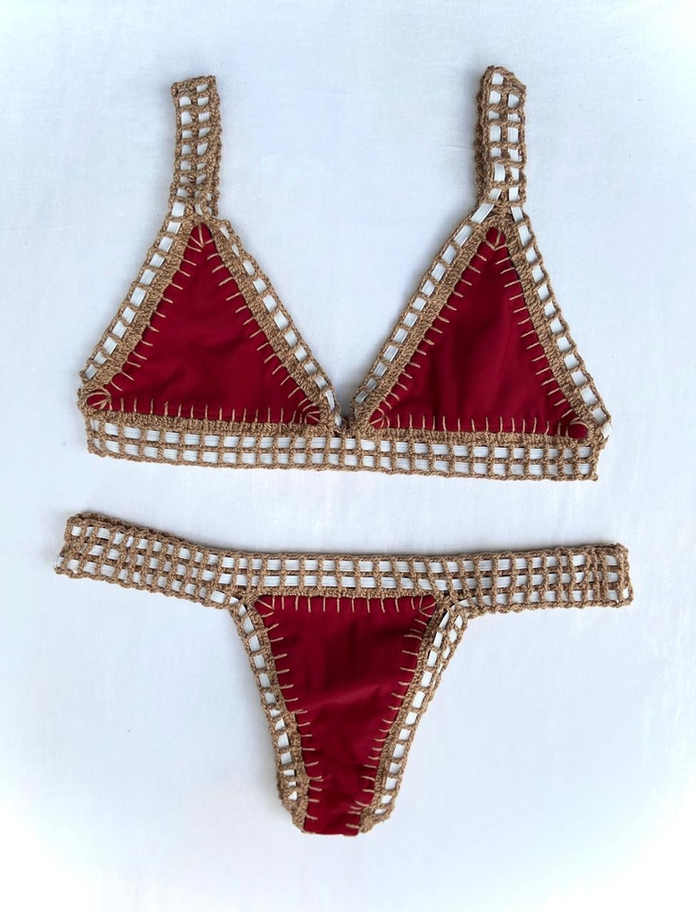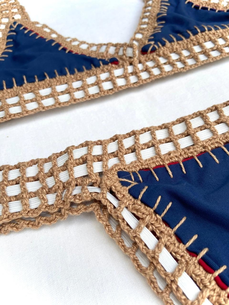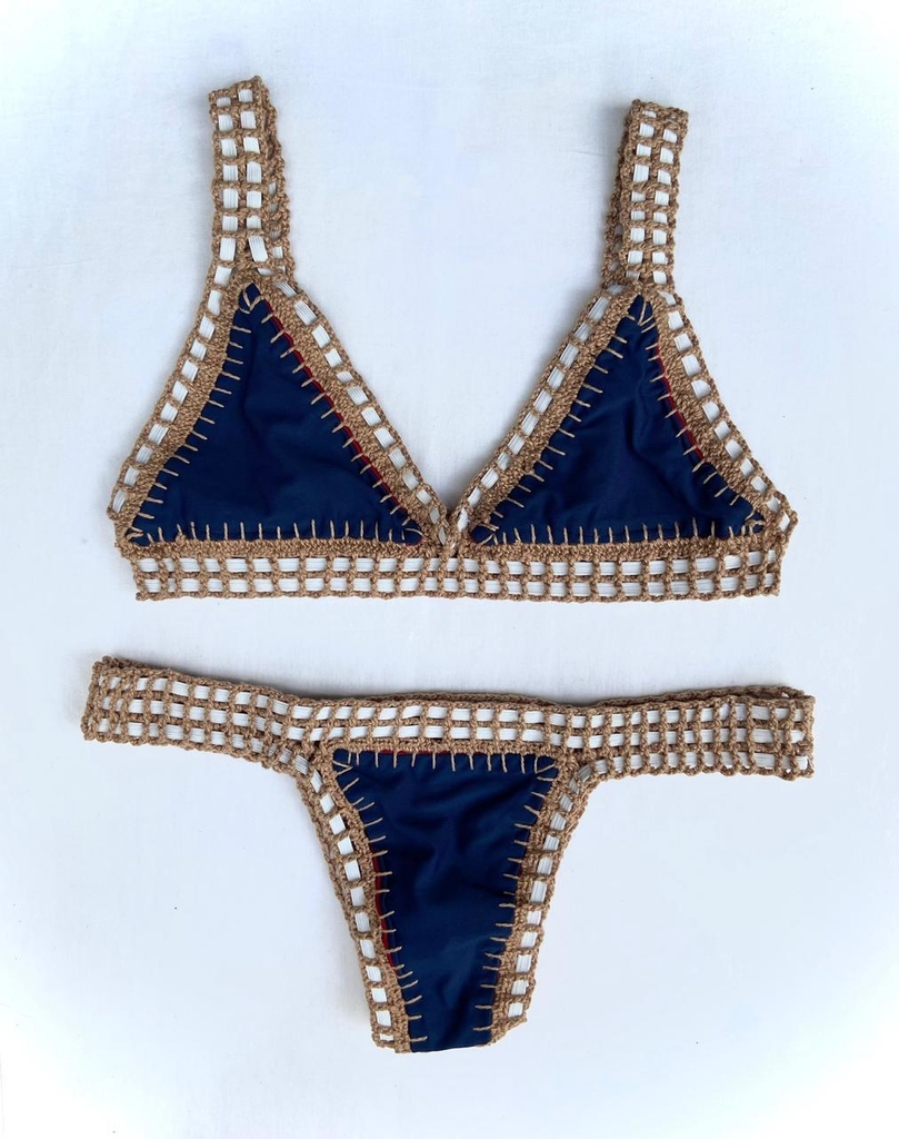 Biquíni Dupla Face feito com lycra de qualidade (Rosset), forro anti-transparência, detalhe e acabamento em elástico e crochê antialérgico.